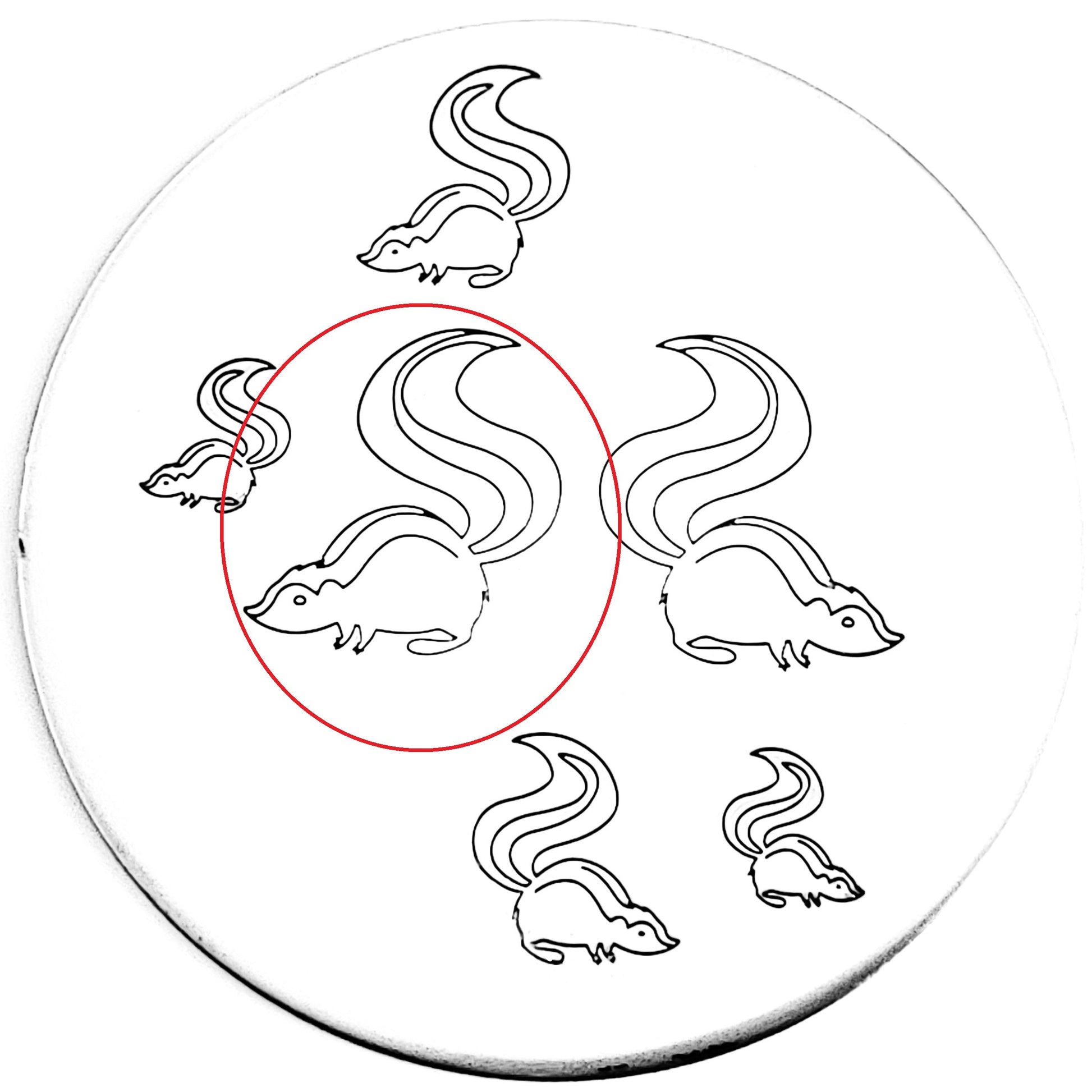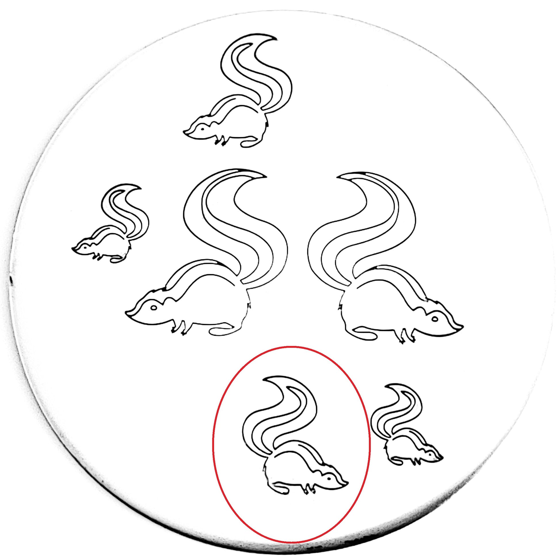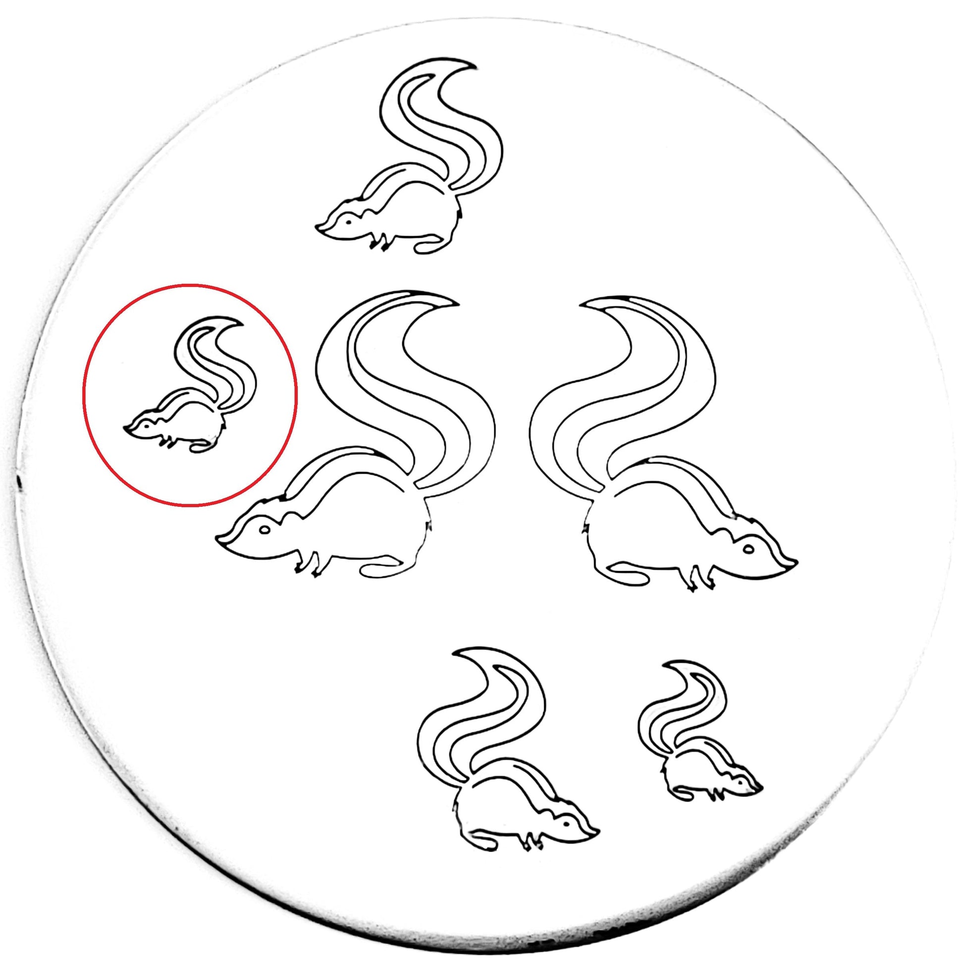 A stinky friend, or fiercely love crazed animal? You be the judge of this skunk hand stamp!