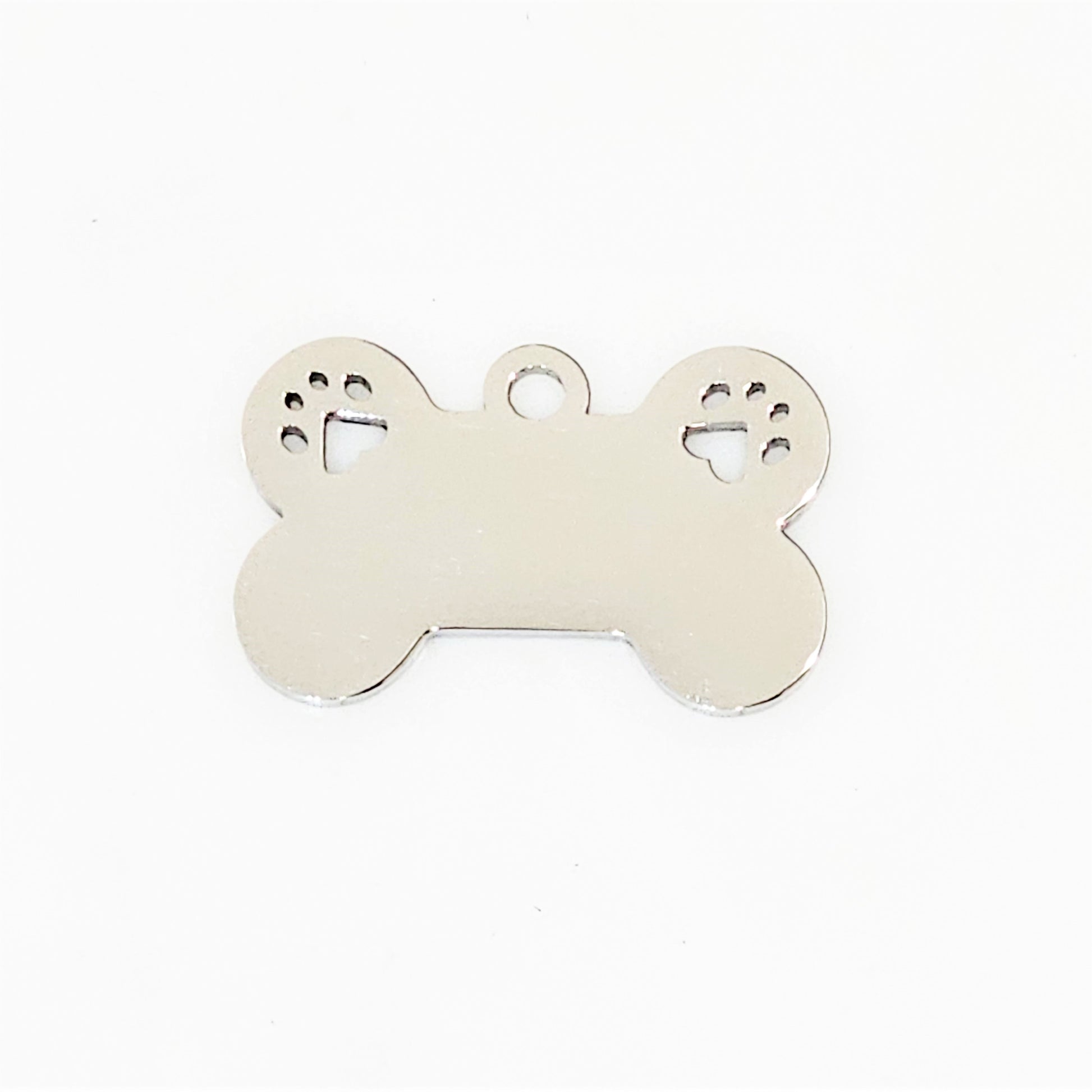 Stainless Steel Dog Bone with Two Paws - 16mm x 25mm