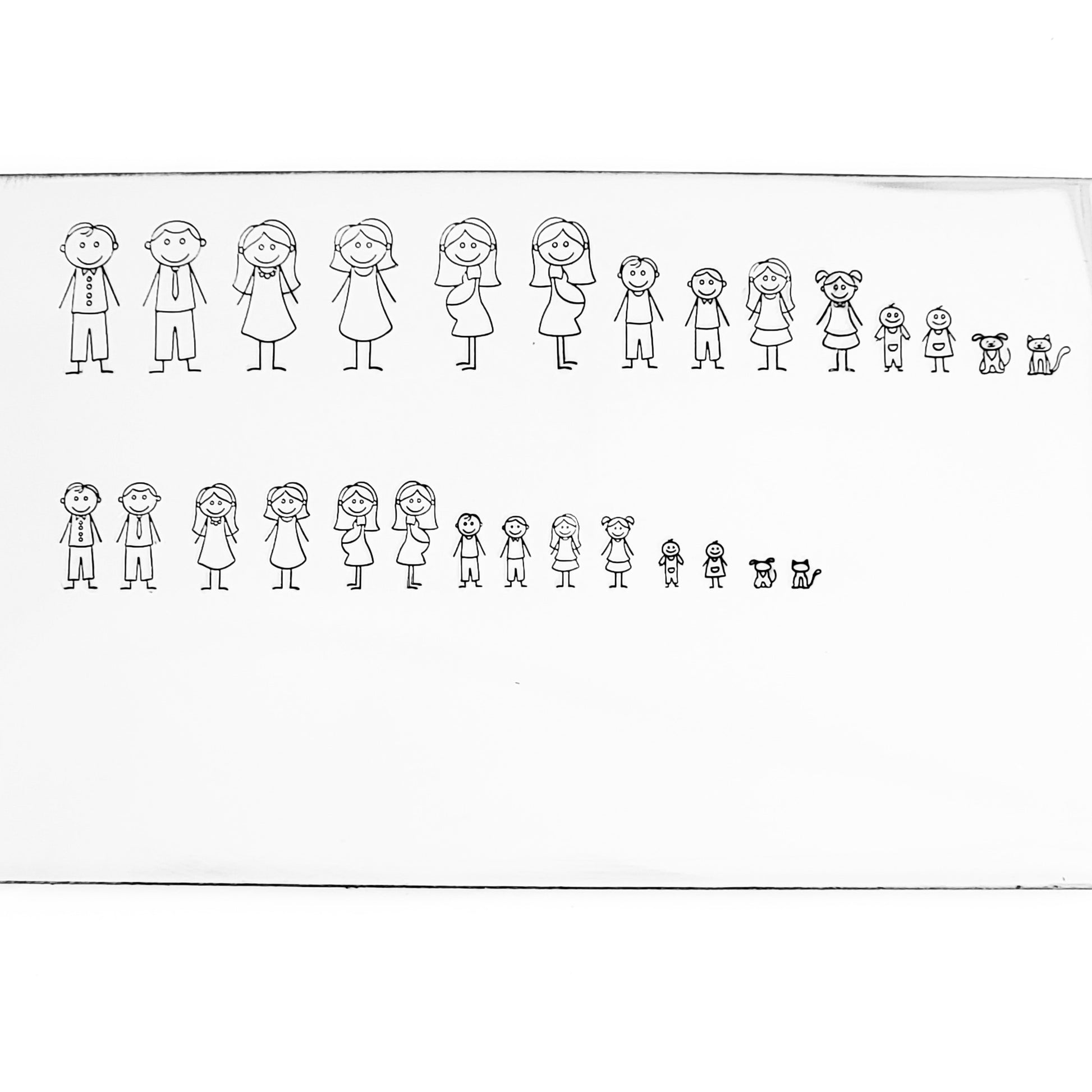 A new stick family metal design stamp that is easy to assemble! Two types of Dads and Moms, Pregnant Woman, Teens, Kids, Babies, and Pets! Assemble in two different sizing modes!