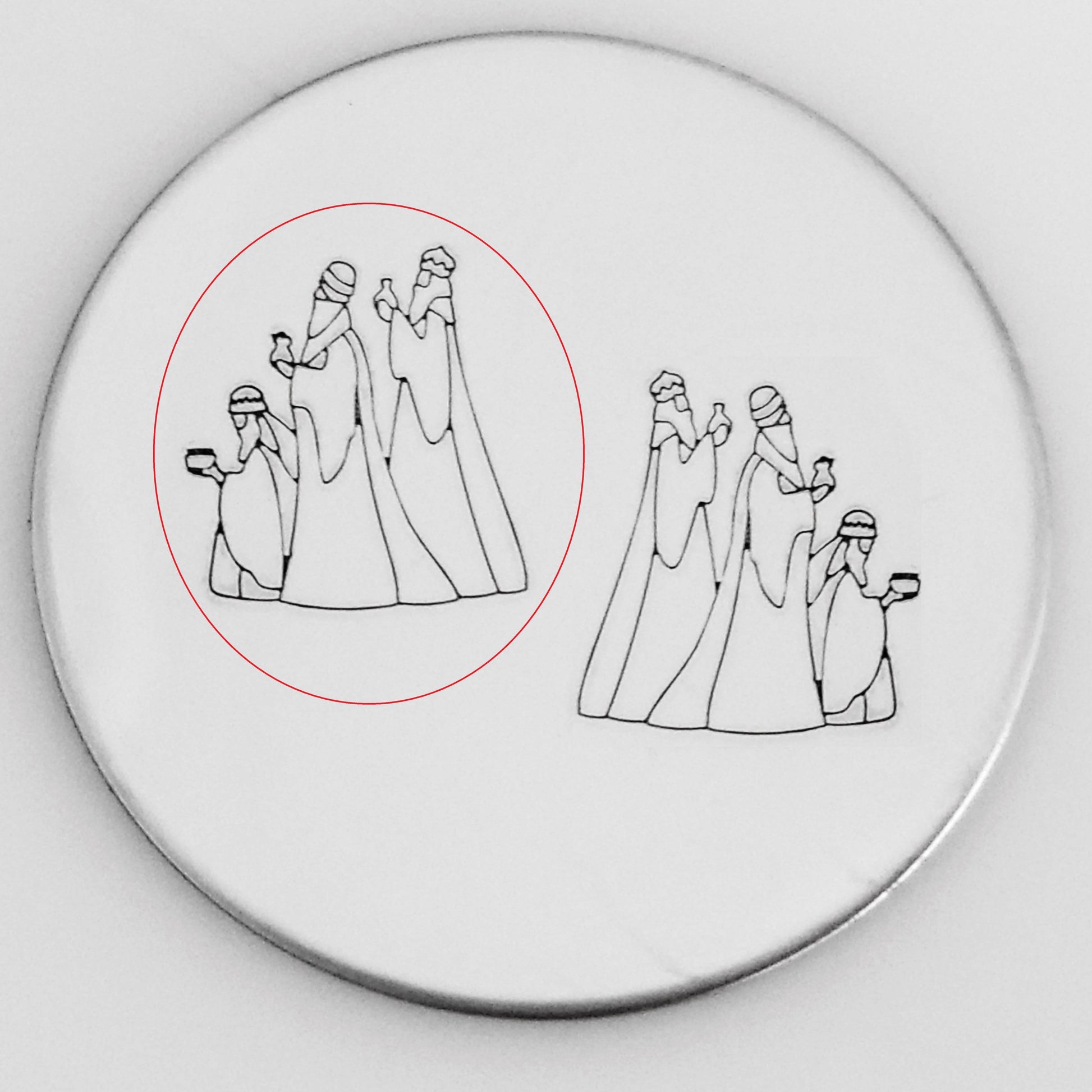 Our full Nativity Scene metal design stamps is complete with wise men, Mary, Joseph, shepherds, and camels! Create a whole scene-scape for your Christmas ornaments and other religiously based hand stamped items!