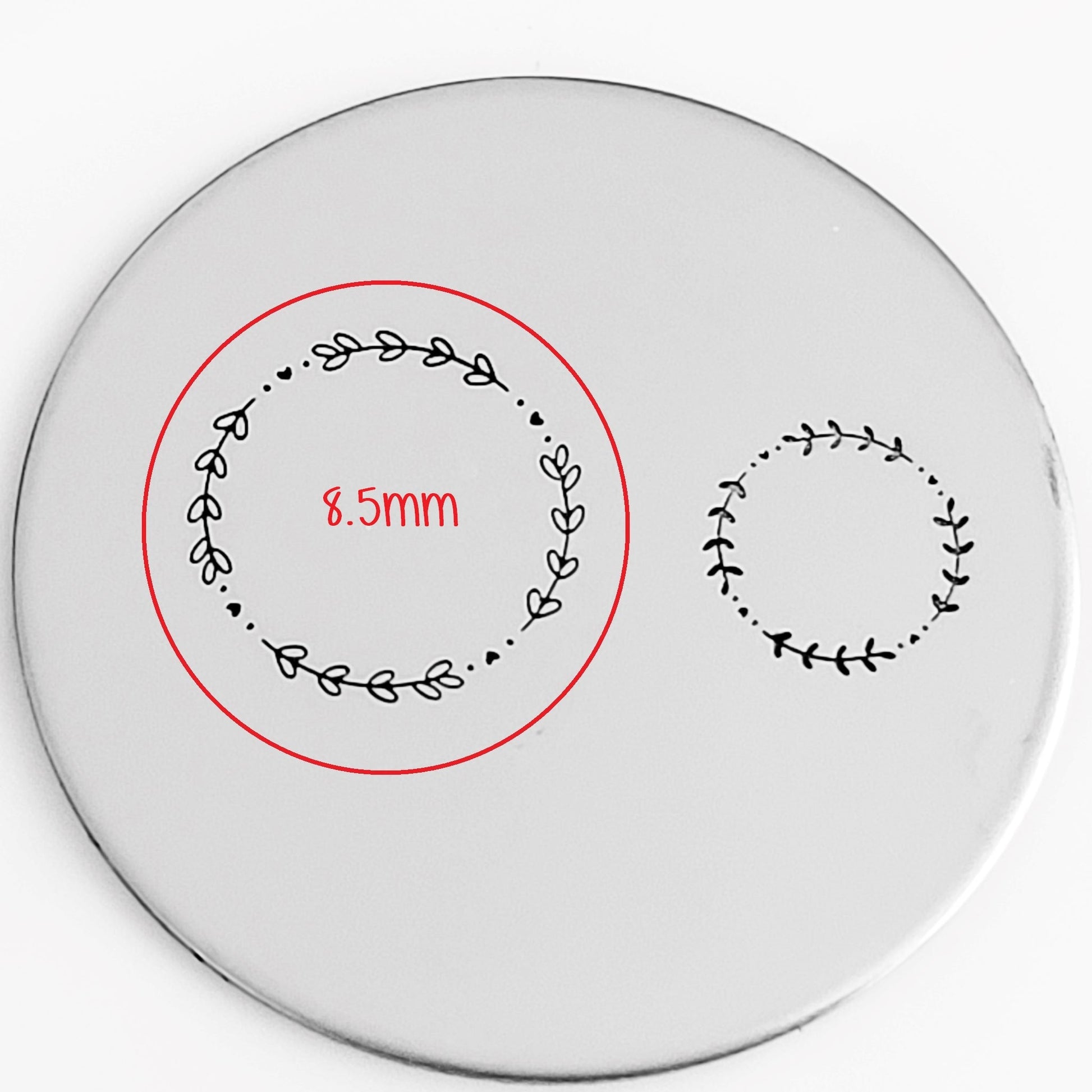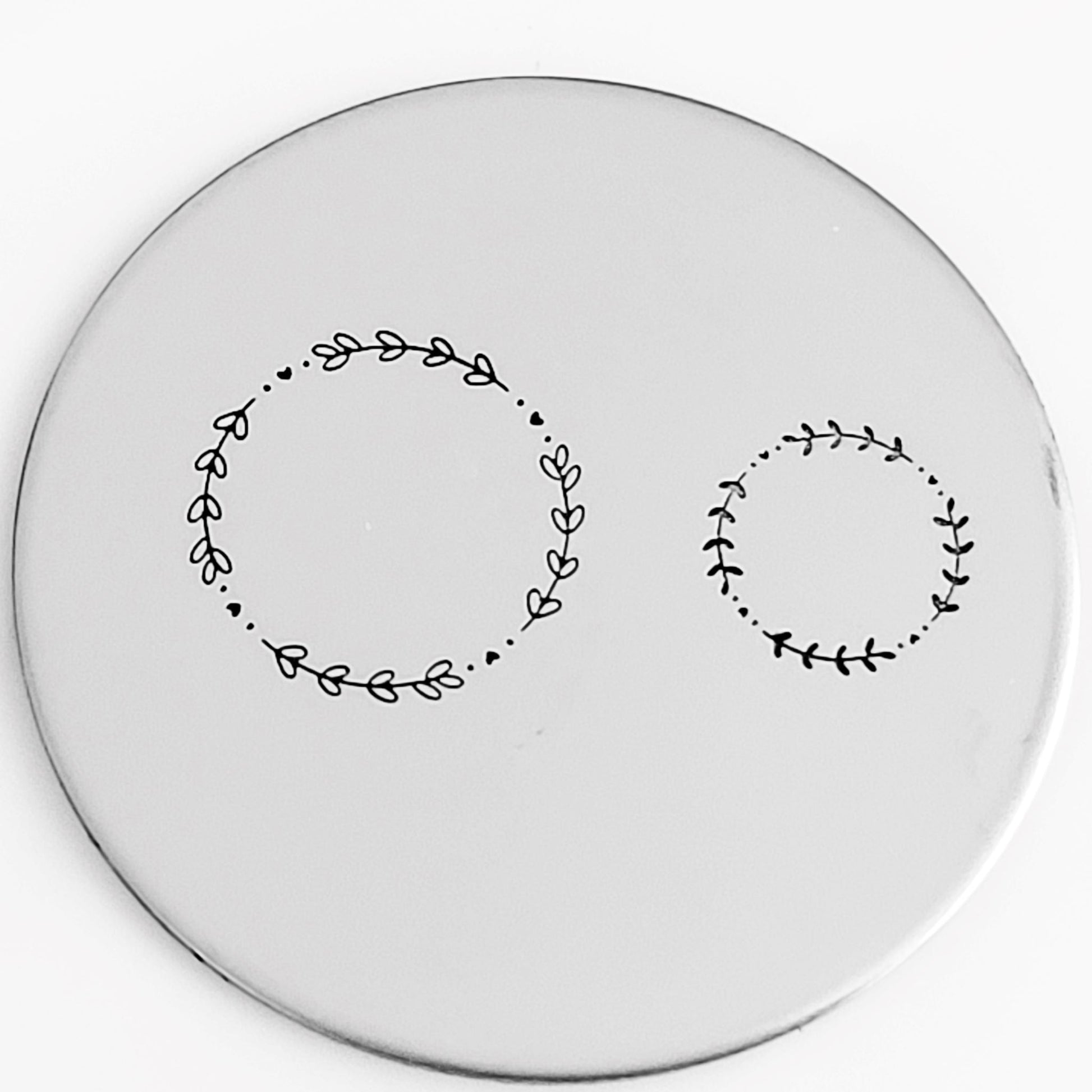 A simple wreath or circle border with some pretty branches. Add flowers, hearts, stars around the branches to make each border unique and lovely, or add holiday/seasonal stamps to make the perfect wreath border metal stamp designs for each season!